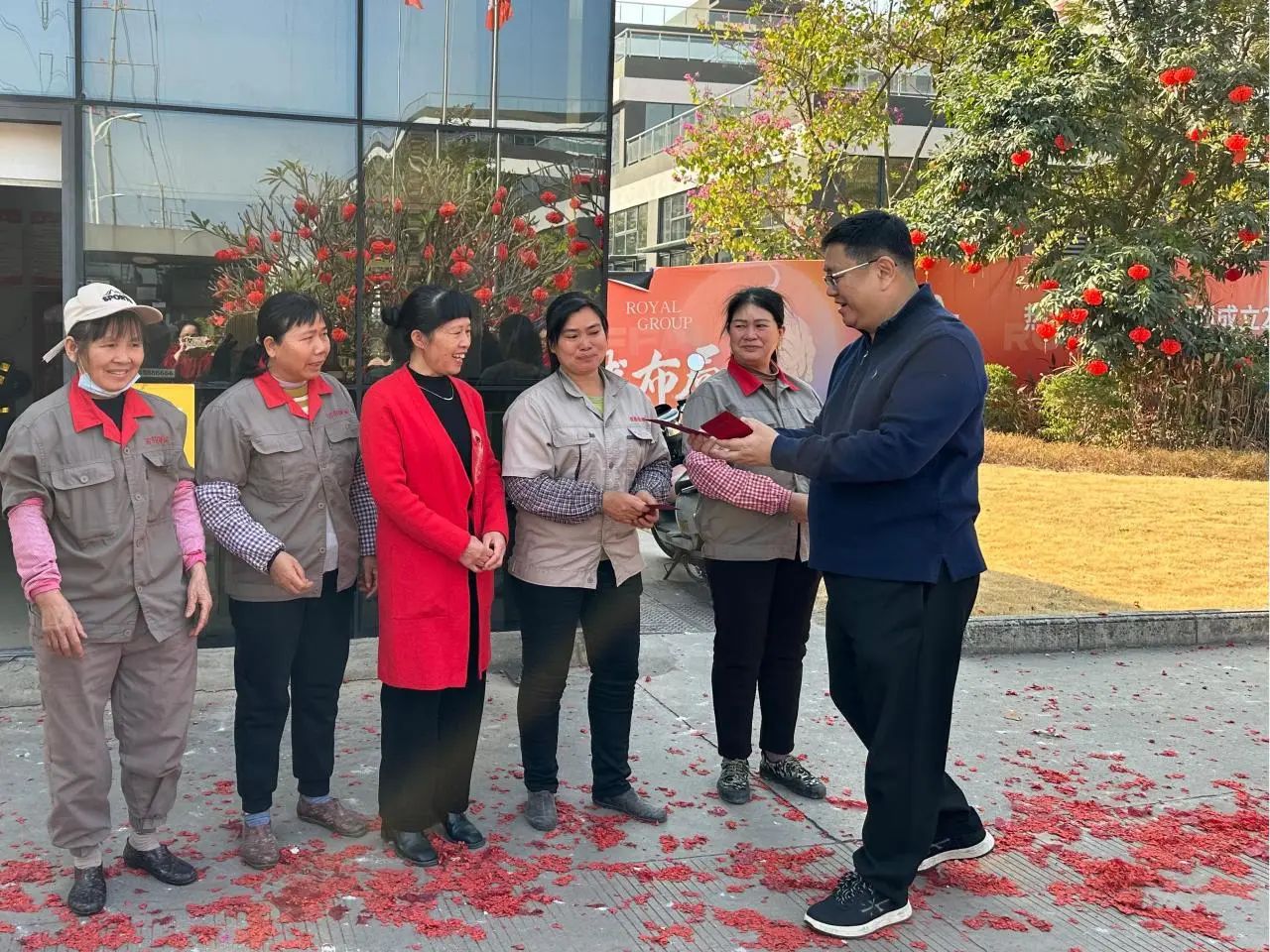 1月29日大年初一,在蛇年新春第一天,萬(wàn)象更新,處處洋溢著(zhù)團圓的氣息。而在這個(gè)闔家歡聚的時(shí)刻,我們的一線(xiàn)員工卻依然堅守崗位,用責任和擔當為公司的正常運轉保駕護航。為感謝一線(xiàn)員工的辛勤付出,集團領(lǐng)導們帶著(zhù)滿(mǎn)滿(mǎn)的關(guān)懷與祝福,深入一線(xiàn),向每位堅守崗位的一線(xiàn)員工致以最誠摯的問(wèn)候和新春的祝福。